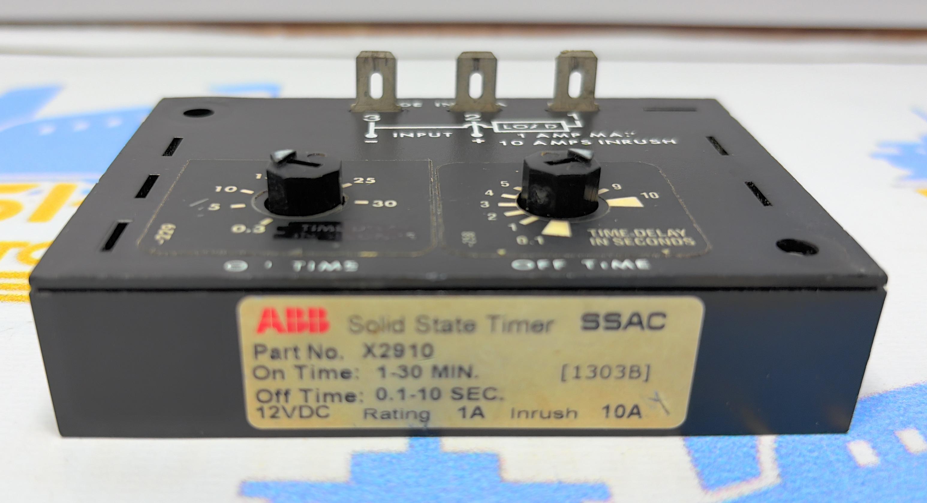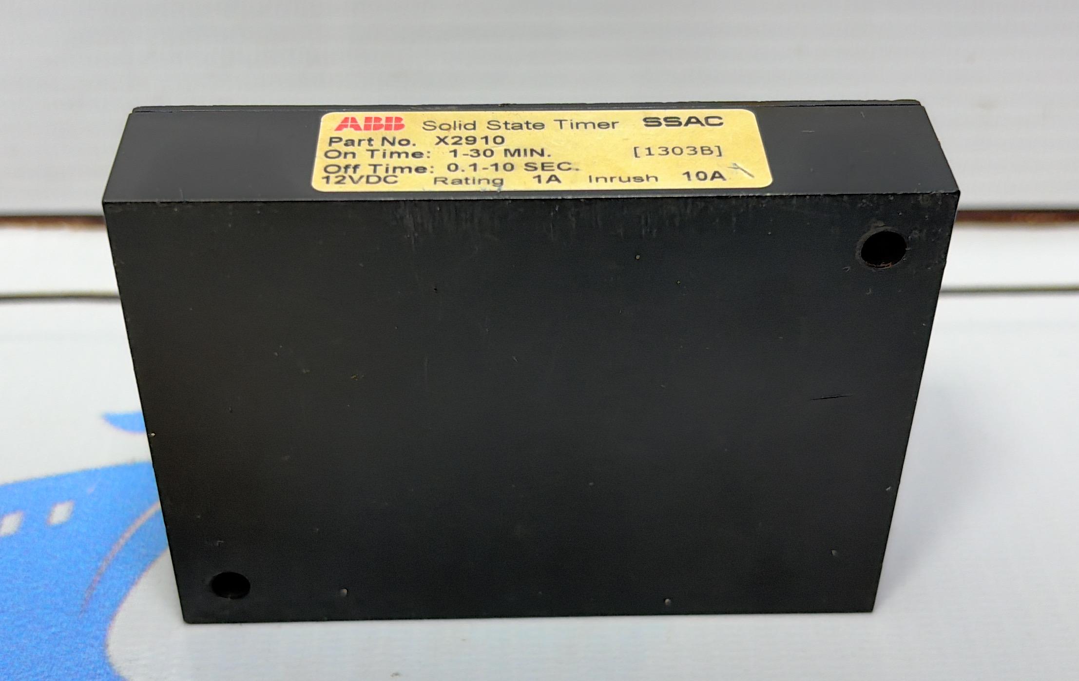 ABB SSAC SOLID STATE TIMER PART NO : X 2910 ON TIME 1-30 MIN OFF TIME 0.1-10 SEC 12 VDC