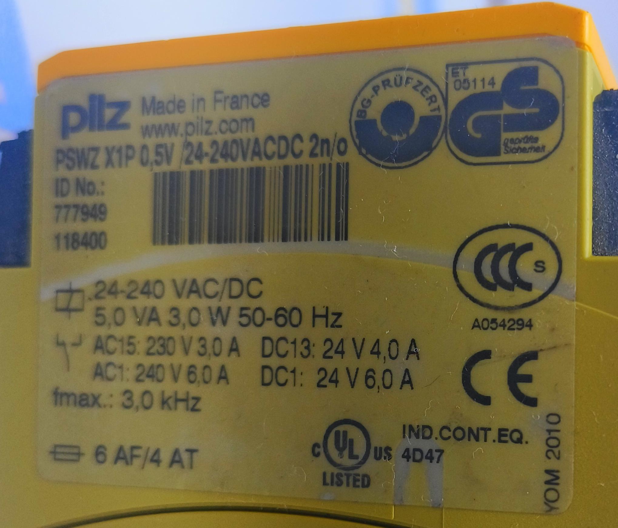 PLIZ PSWZ X1P SAFETY RELAY ID NO : 777949 118400