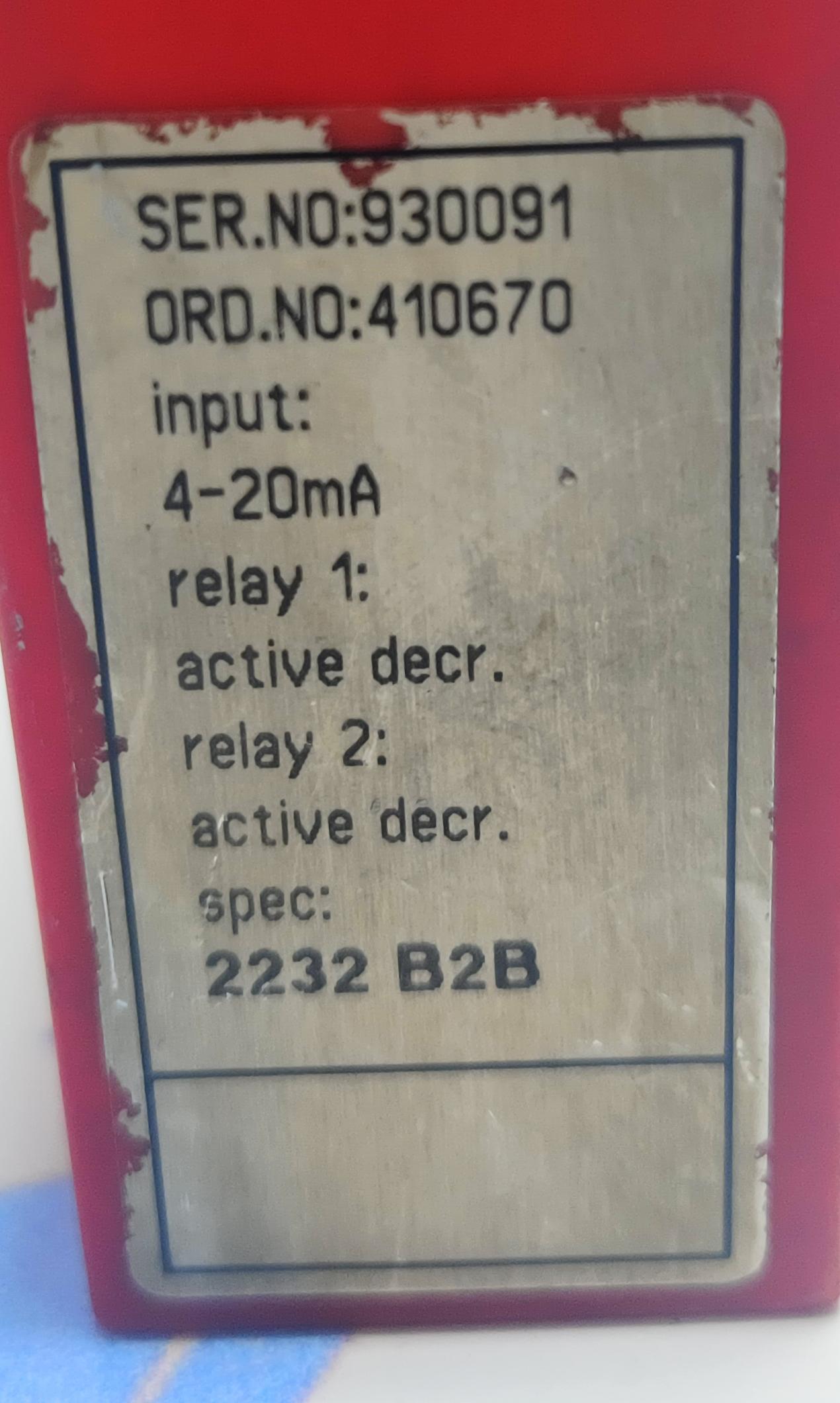 PR ELECTRONICS 2231 TRIP AMPLIFIER .SER NO : 110529741