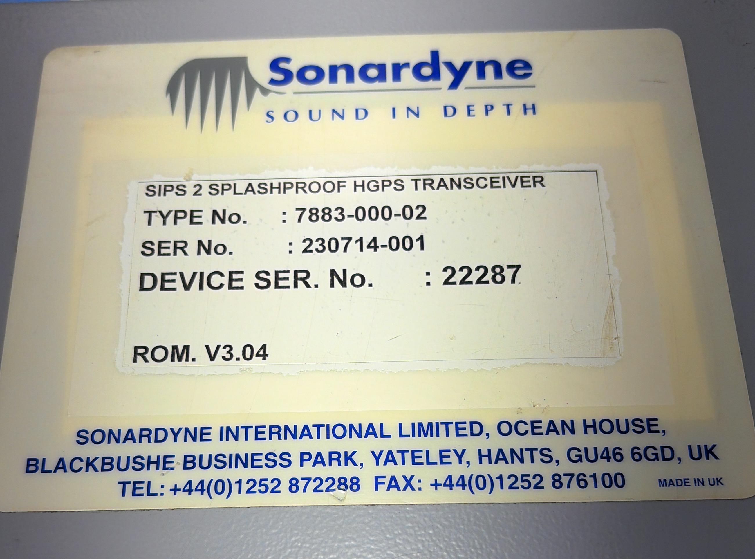 SONARDYNE SIPS 2 SPLASHPROOF HGPS TRANSCEIVER TYPE NO : 7883-000-02 SER NO : 230714-001