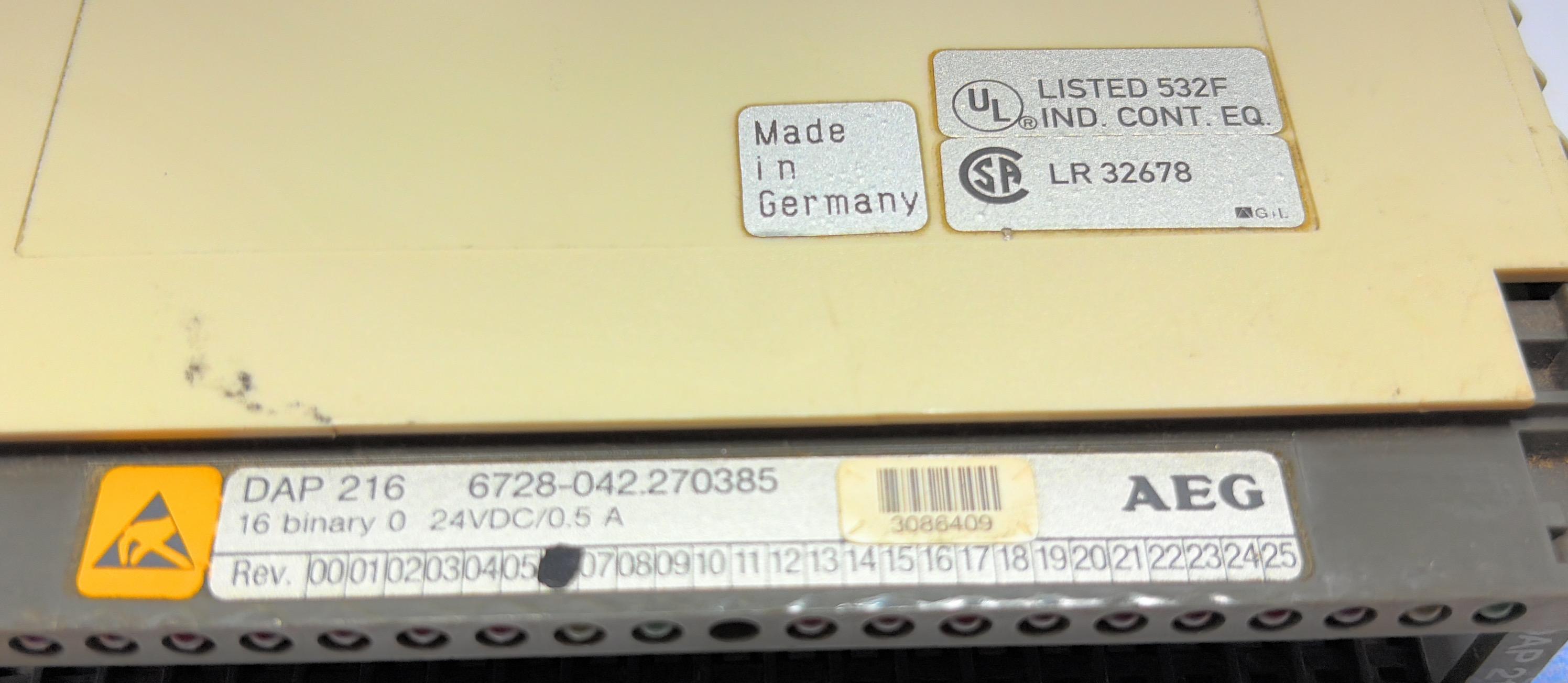 AEG DAP 216 16- CHANNEL 24 VDC DISCRETE INPUT MODULE - NO: 6728-042.270385