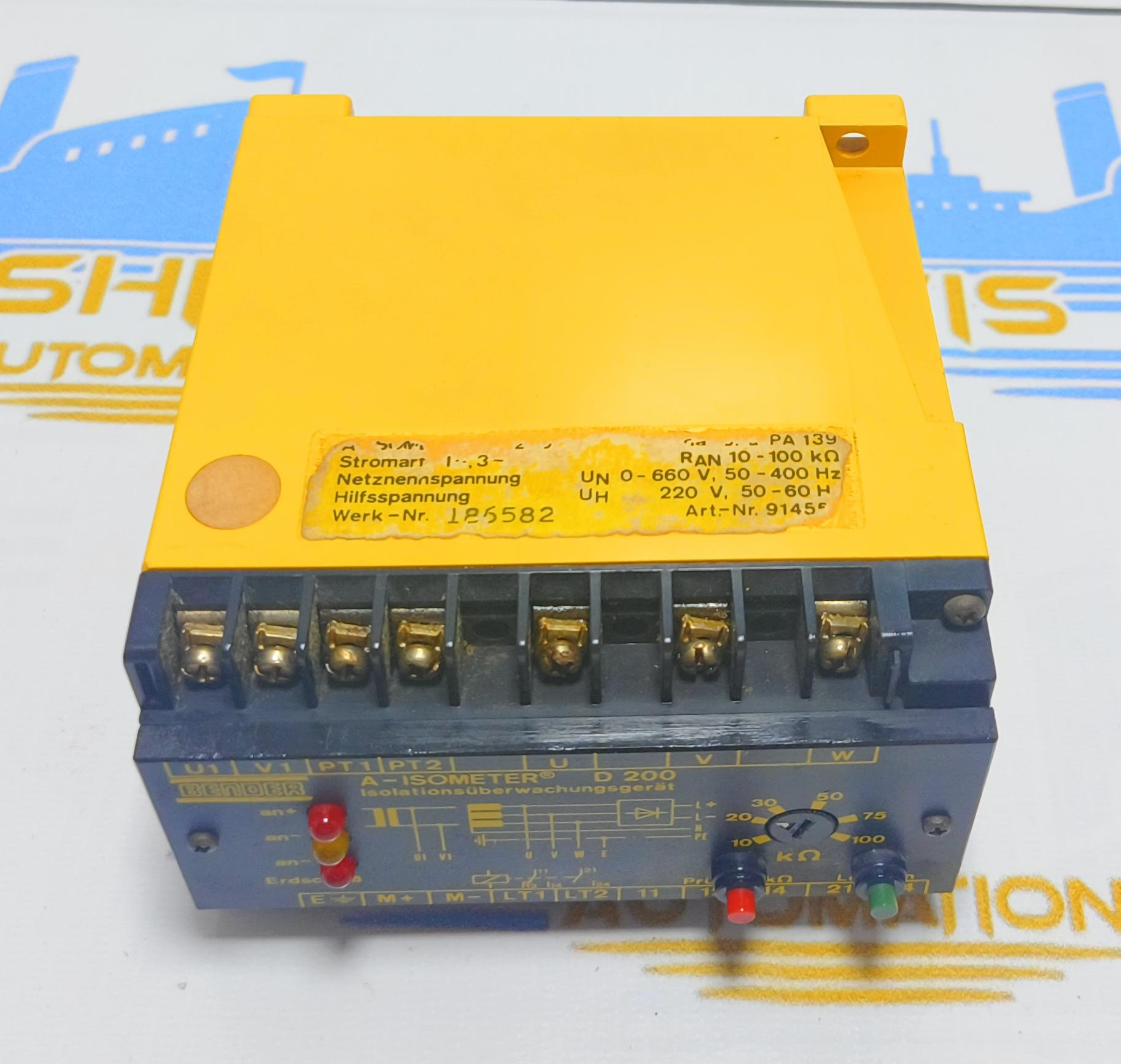 BENDER A-ISOMETER D200 Insulation Monitoring Device 0-660V, 50-400Hz WORK NO : 184337