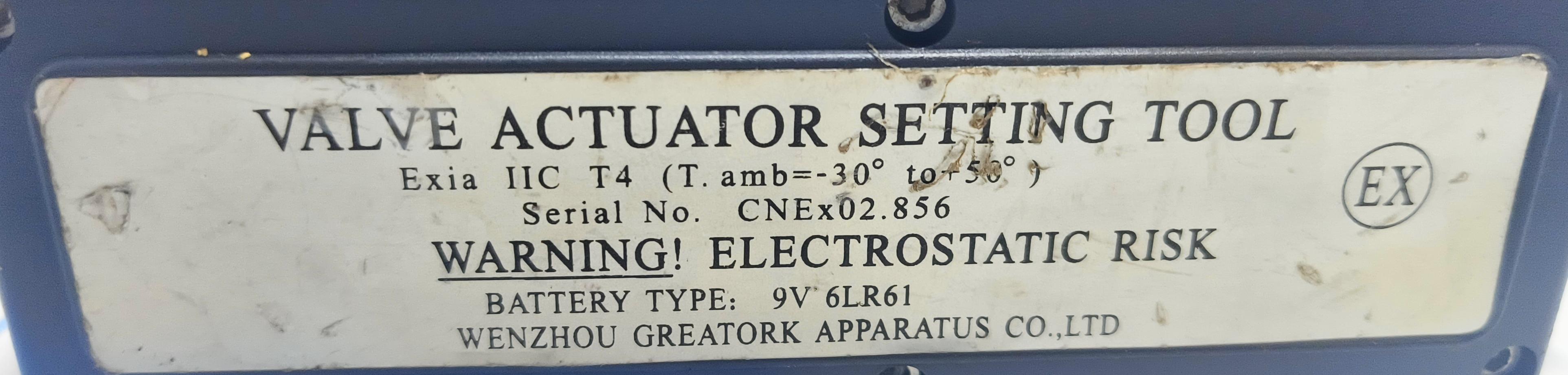 GREATORK VALVE ACTUATOR SETTING TOOL SERIAL NO : CNE x 02. 856