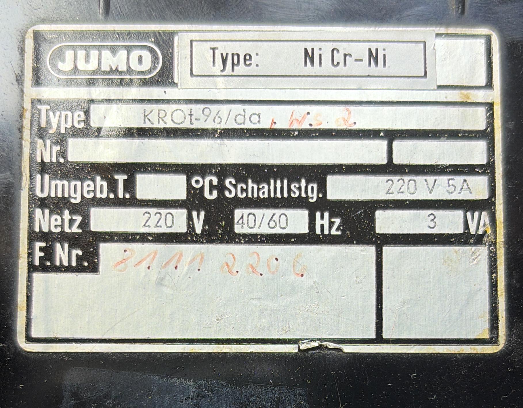 JUMO DIGIT KROT- 96/DA TEMPERATURE CONTROLLER Ni Cr - Ni 220 v