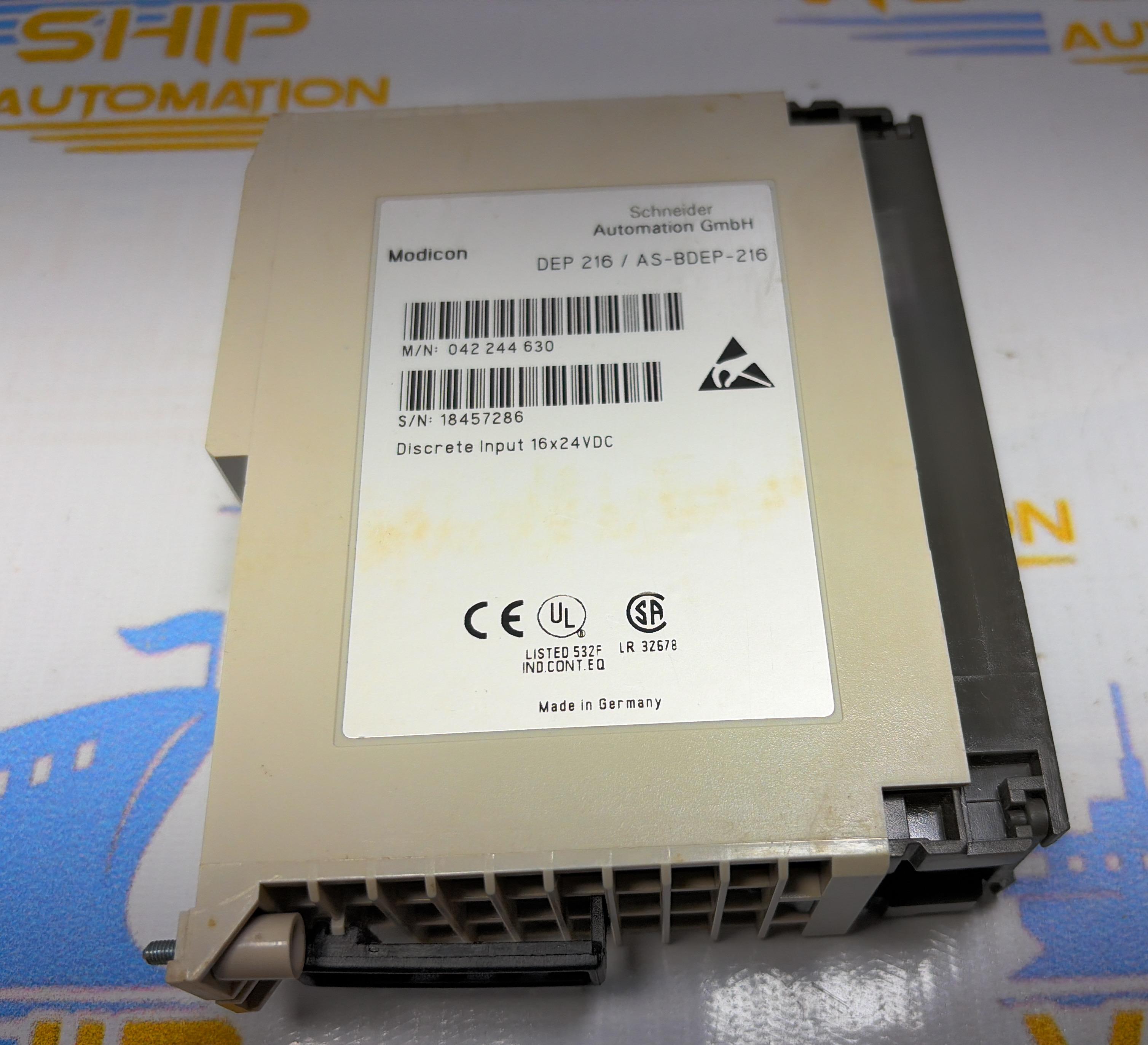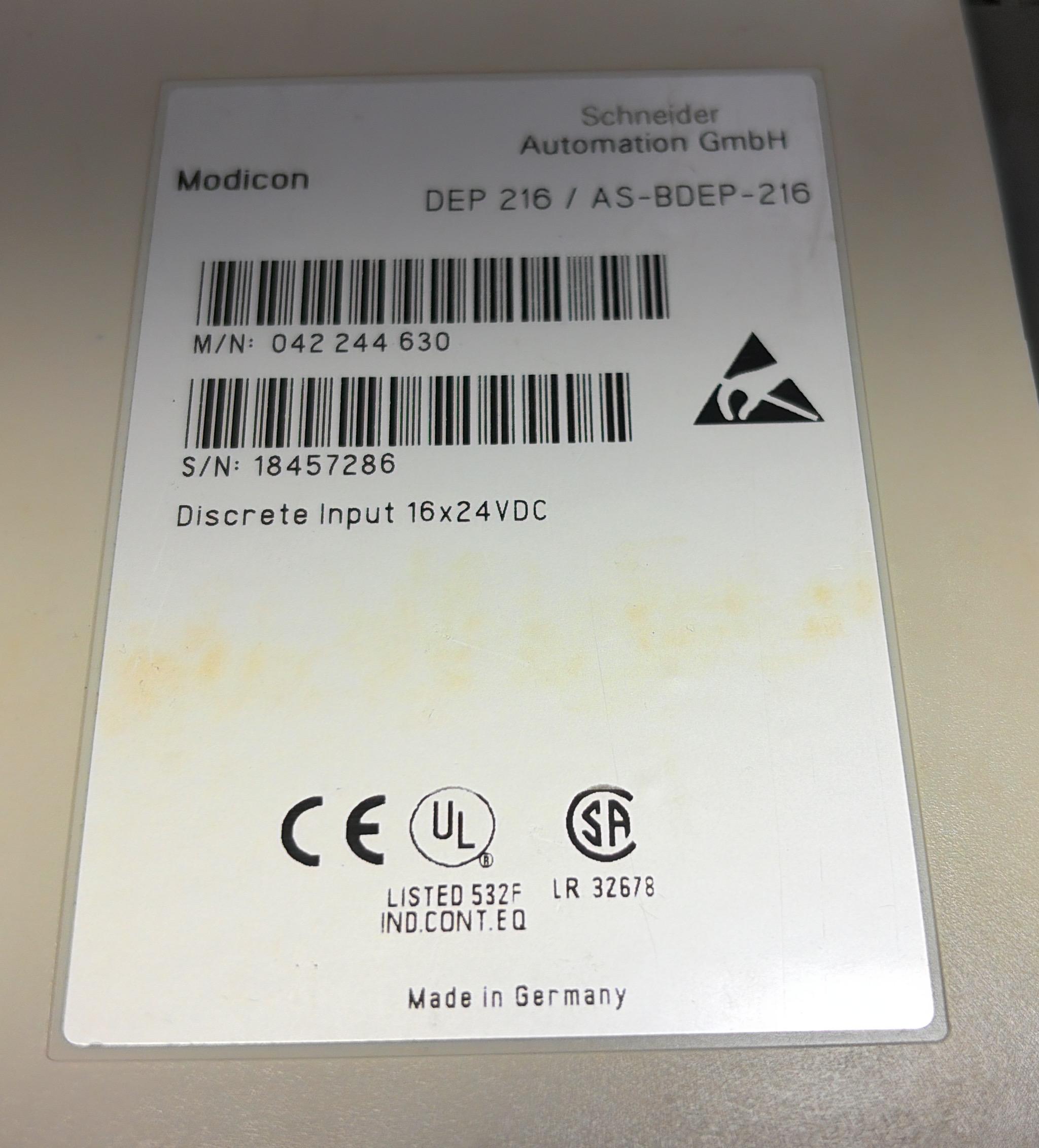 SCHNEIDER AUTOMATION INC DEP216/AS -BDEP-216 DISCRETE INPUT MODULE 16 x 24 VDC S/N 31983103792